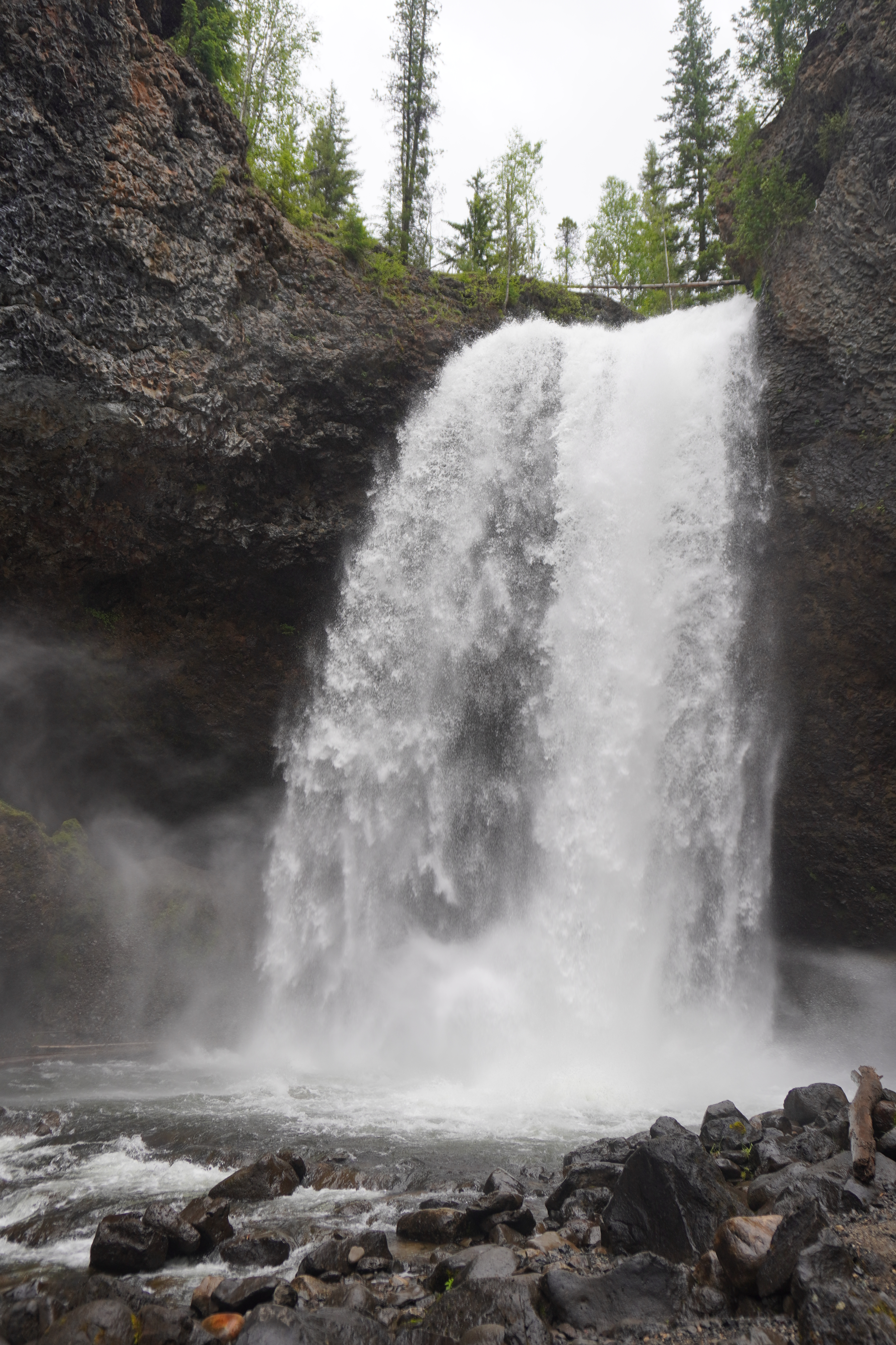 This was the last main stop in the Wells Gray Corridor for us. With ample parking and just a quick hike to the viewpoint, it’s a stop we recommend making. It’s an extremely powerful gushing of water which you can sit and watch for hours. If you visit at the right time—usually in September or October —you can witness the salmon swim upstream. The fact that the salmon can even manage to make the jump across the river is incredible.